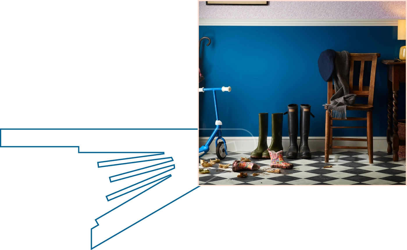 Handprints and outdoor clothes contaminate walls.
